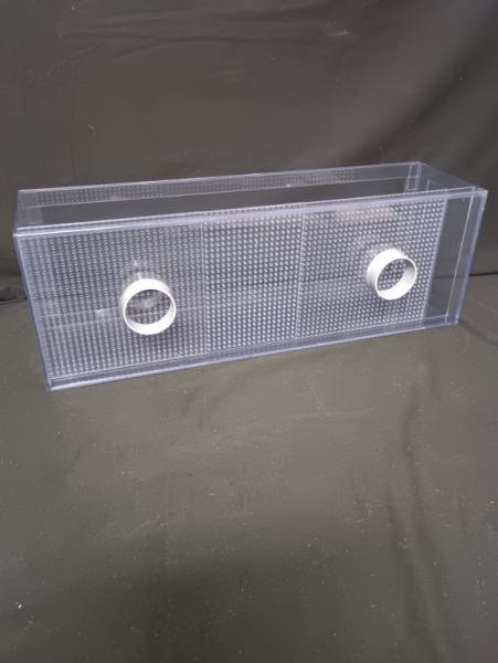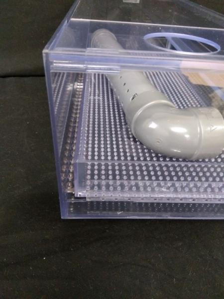 こちらで濾過層を同時に購入し、現在はその運転テストを兼ねて、少々使い古したろ材を使用して濾過層→ウールボックスを循環させてます。配管類は上部に固定でき、ウールだけ交換できるため、ウールがとても楽に交換できます。